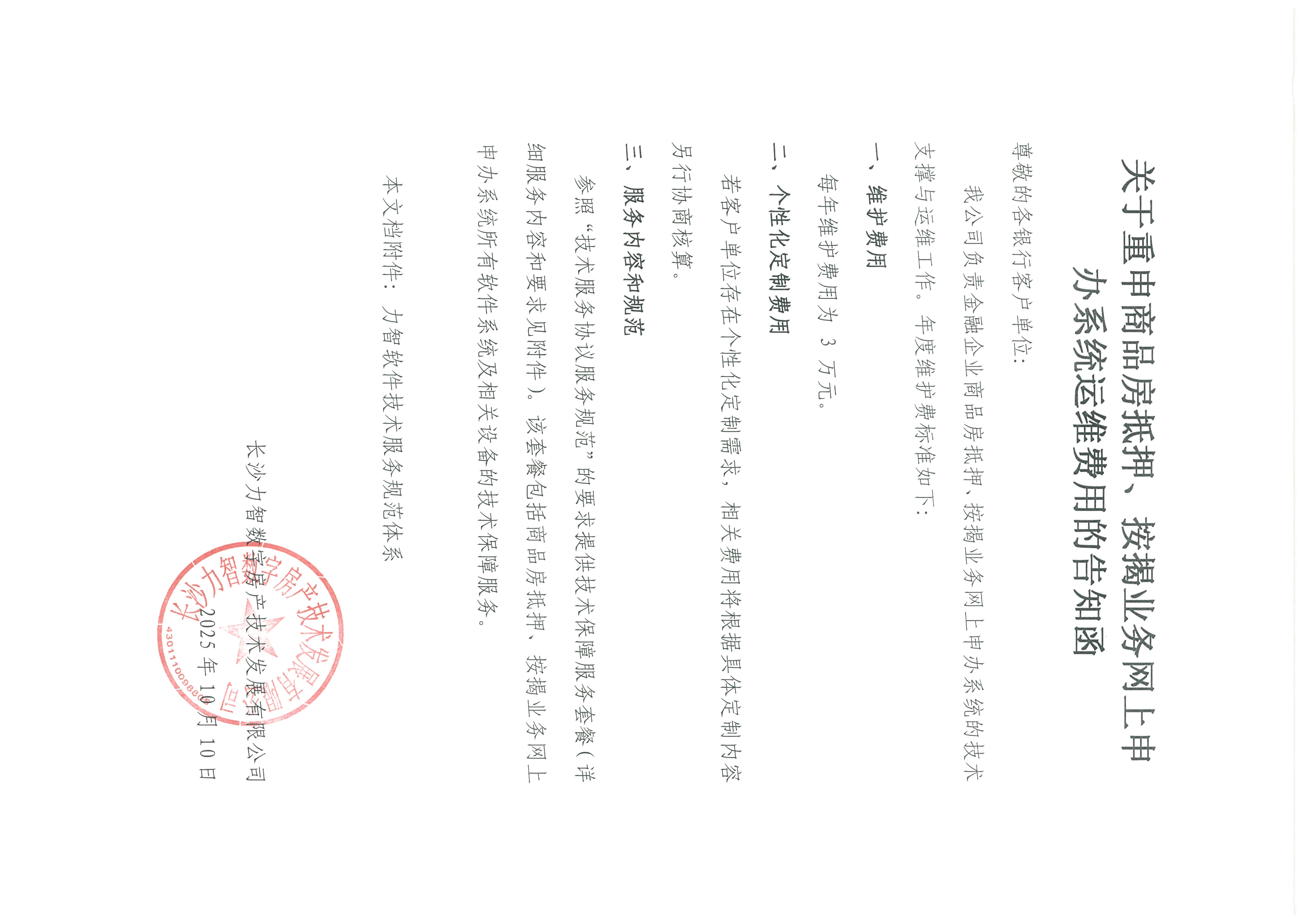 关于重申商品房抵押、按揭业务网上申办系统运维费用的告知函