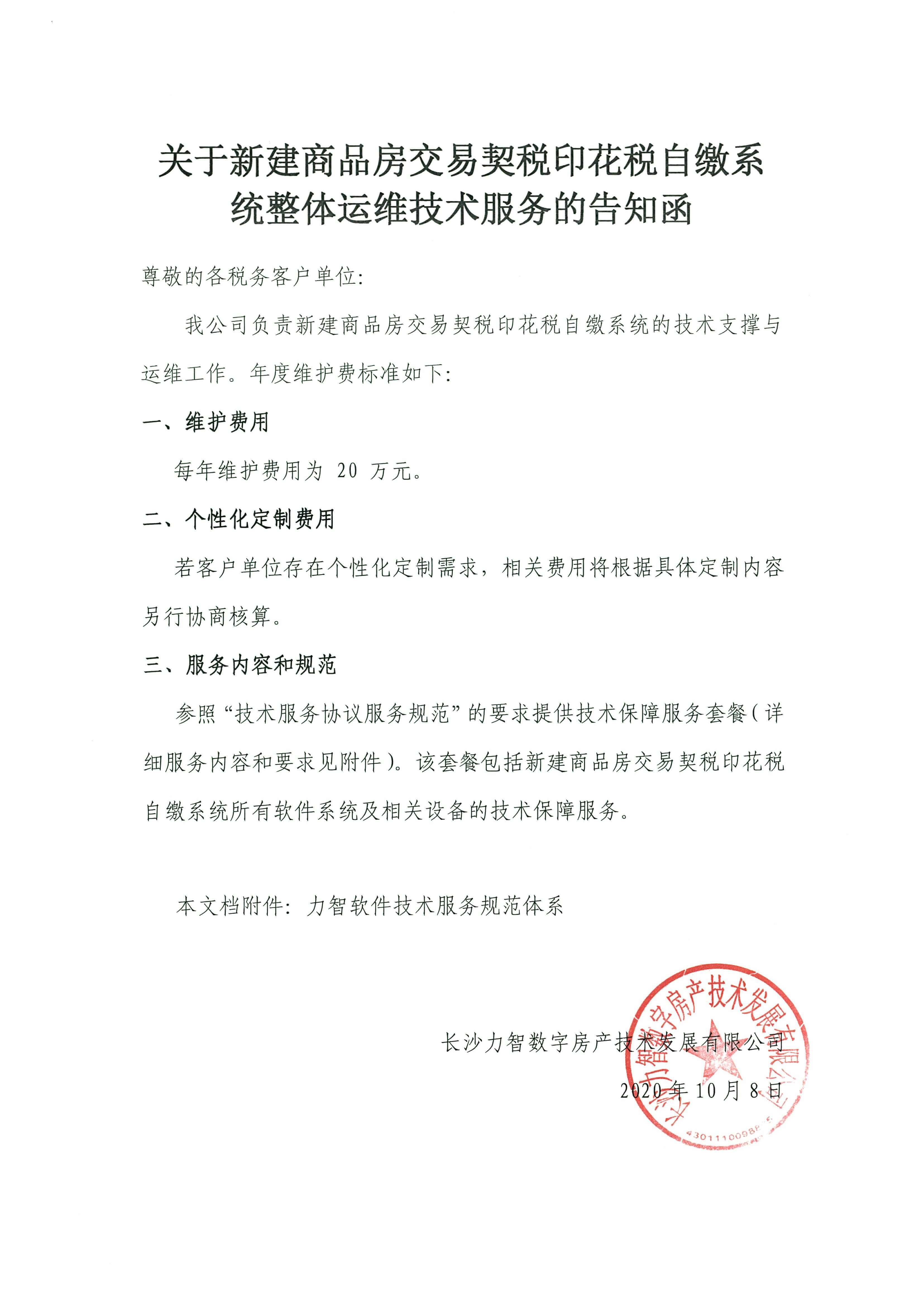 关于新建商品房交易契税印花税自缴系统整体运维技术服务的告知函